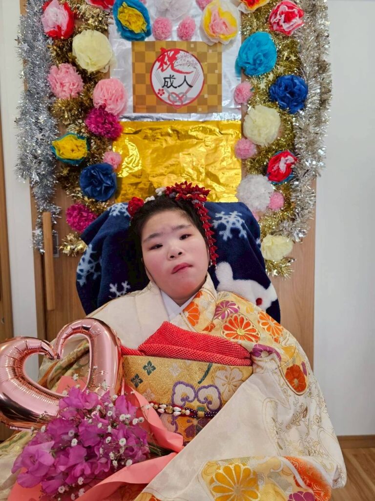 「かざまぐみ20歳の祝い」写真撮影会をやりました! 2026年2月14日 最終更新日時 : 2026年2月14日 info@kazamagumi.jp あかぐみ蔵敷で20歳になる方を祝って、お化粧、着物、袴を着て写真撮影会をしました!皆さんとてもキレイにかっこ良くなっていました。